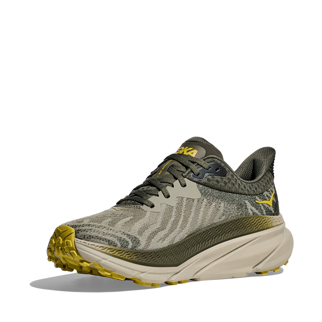 Recognized on the road, tested in the field. The new Challenger 7, like its predecessors, is designed for the intersection of roads and trails in nature. We have designed it from scratch, from the outsole to the upper part of the shoe, where we have used a simplified mesh for maximum breathability. In between is a midsole made of a new, pleasantly soft foam, and for an even softer and more comfortable ride, we have raised the entire shoe by 2 mm. The outsole is equipped with our patented durable Durabrasion rubber, which performs very well on asphalt, and even better in nature. The design of the outsole itself has also been changed and we are confident that this is the Challenger with the best running experience to date. The inspiration was gravel bike tires, so for better grip on uneven terrain, we placed smaller, more closely positioned studs in the center of the shoe and larger, more aggressive studs further towards the edge.