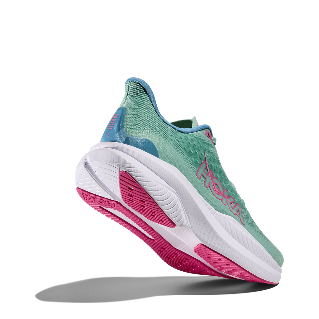 Look, here it is, our lightest and most responsive Mach yet! We've updated the popular and lively Mach with a highly responsive Super Critical foam for even greater energy return and added rubber in strategic places on the outsole for better durability and traction. In the design of the shoe's renewal, we focused on speed and of course details, so we used a premium wing jacquard material with zonal breathability on the upper part of the shoe. Also new is the double tongue attachment, which further increases the feeling of comfort for the foot. Your new record is just around the corner!