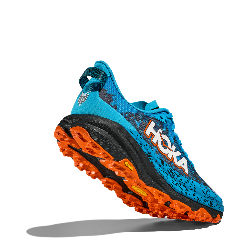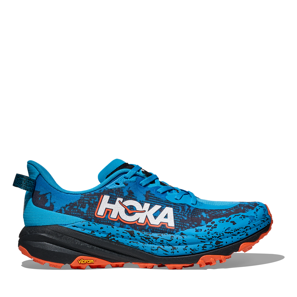 Super grip and responsiveness for a variety of technical terrain, where there is one and only GOAT – you’re looking at him. Combining Hoka’s tried and true cushioning with aggressive traction and ultra-lightweight materials, the new Speedgoat 6 was designed to conquer the trails of the outdoors. We’ve further improved the latest version of the technical terrain machine with a breathable, lightweight textile upper, a foot-hugging internal construction and a soft, double-clamped tongue. Of course, we didn’t forget about traction on the terrain, as we’ve also updated the orientation of the rubber studs.
