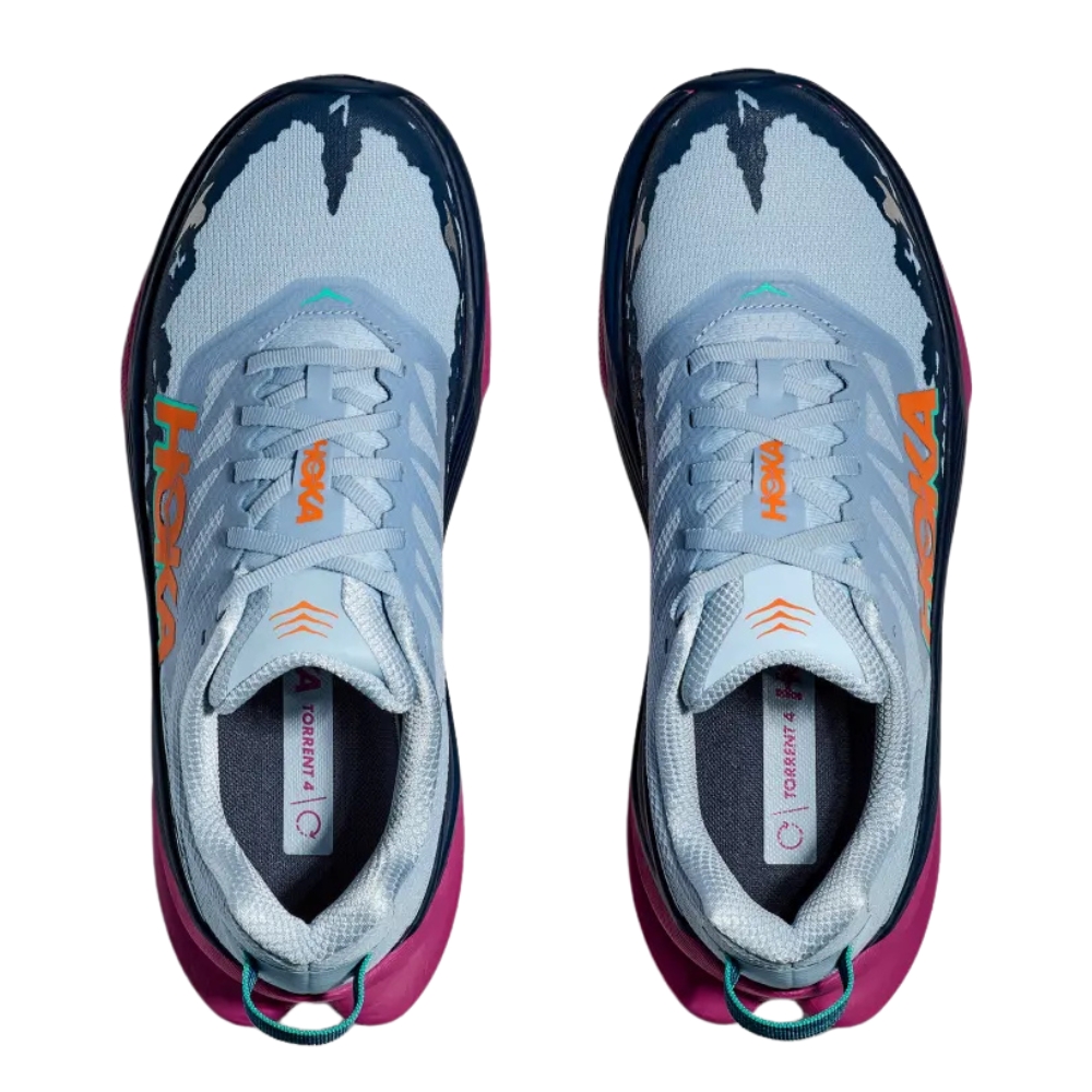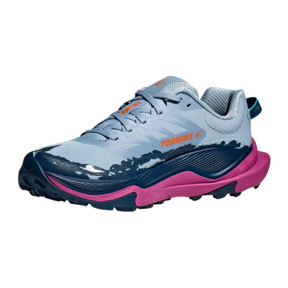 Lahki, mehki, odbojni, stabilni in vzdržljivi – prenovljeni Torrent 4 je popolnoma osredotočen na blaženje in optimiziran za trail. Srednji podplat smo nadgradili z lažjo in bolj oblazinjeno zmesjo, višjo višino sloja (stack height), hkrati pa stopalo varno postavili v Active Foot Frame™. Podplatu smo dodali 5 mm agresivne kramplje za boljši oprijem, visokootporni gumijasti sloj pa se strateško ovije po podplatu za večjo vzdržljivost. Dodali smo še mehkejši vložek za nogo (sockliner) za udobje tudi na daljših razdaljah.