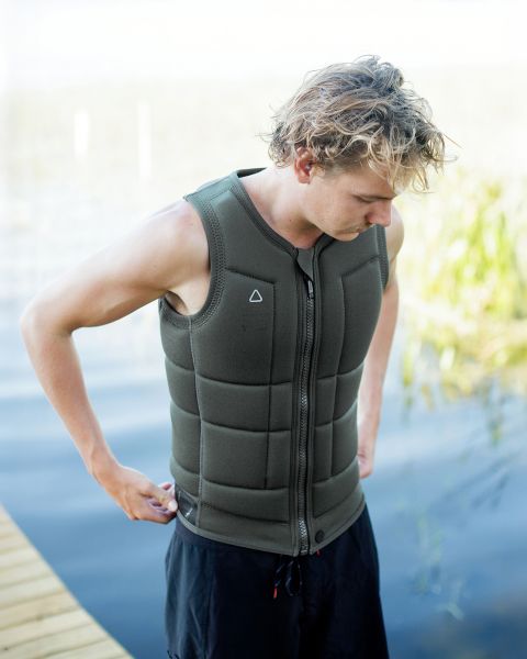 Olivno zelena barva za leto 2026 ni le modna izbira, ampak odraža vzdržljivost, ki jo serija Affiliate ponuja že leta. Zahvaljujoč Dual-Layer konstrukciji se material v vodi ne raztegne preveč, kar pomeni, da bo jopič ohranil svojo prvotno obliko in tesno prileganje skozi celotno sezono.