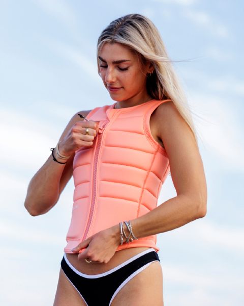 Ženski impact jopič Total Ladies za leto 2026 v barvi Melon je prava izbira za riderke, ki želijo na vodi izstopati s stilom. Ta jopič združuje Follow-ov prepoznaven ženski kroj s tehničnimi lastnostmi, ki zagotavljajo brezskrbno uživanje v wake parku ali za čolnom. Barva Melon prinaša poletno energijo in visoko vidljivost na vodi.