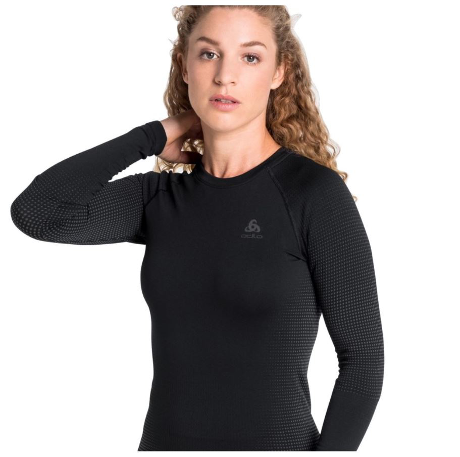 Ženska dolga majica Odlo Performance Warm Eco je prvi sloj oblačil, ki bo poskrbel za dodatno toplino tekom zimskih dni za različne športne aktivnosti kot so smučanje, deskanje na snegu in ostale aktivnosti. Odlo aktivna majica PERFORMANCE WARM ECO se ponašajo z odlično toplotno izolacijo in učinkovitim odvajanjem vlage, da vaša koža ostane suha in topla. Za dodatno udobje poskrbi tudi brezšivna konstrukcija. Žensko aktivno perilo PERFORMANCE WARM ECO je izdelano iz izredno elastičnega recikliranega materiala, ki se popolnoma prilega vašemu telesu in omogoča svobodo gibanja. Odlo majica se kaže tudi v Bodymapping zasnovi, ki omogoča boljšo regulacijo telesne temperature glede na fiziologijo telesa. Tkanini je dodana tudi ZeroScent obdelava, ki preprečuje nabiranje bakterij in s tem neprijetne vonjave.