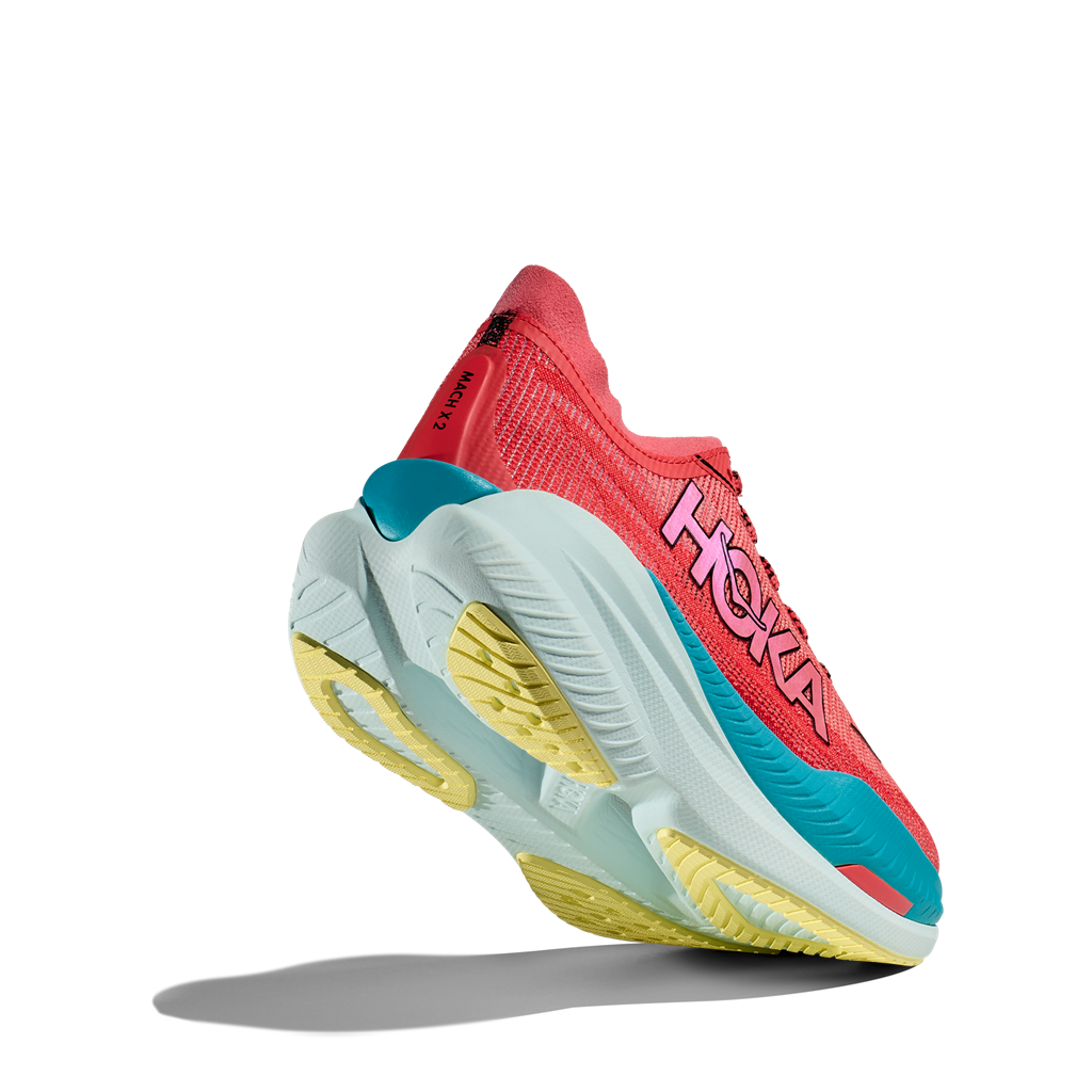 Novi, vroči Mach X 2 je tu in je drznejši kot kadarkoli prej! Idealen cestni copat za hitrost, tako za vsakodnevne treninge kot tudi tekme. Navdih zanj je bil naš uspešni racer Cielo X1 s svojo tekmovalno geometrijo. V modelu Mach X 2 smo združili ekstra odzivno peno PEBA v zgornji plasti vmesnega podplata, povečali profil gugalnika za agresivnejši odriv ter podaljšali dizajn plošče Pebax® za še boljšo podporo in propulzijo. Zgornji mrežasti del copata je super zračen, nudi dobro oporo, medtem ko smo ovratnik copata v maniri tekmovalnih copat oklestili in ga pripravili za tekmo. Mach X 2 je hiter in odziven copat za treninge in tekme. Je lahek, cool, zelo zabaven in bo z vami pri vaših novih tekaških mejnikih.