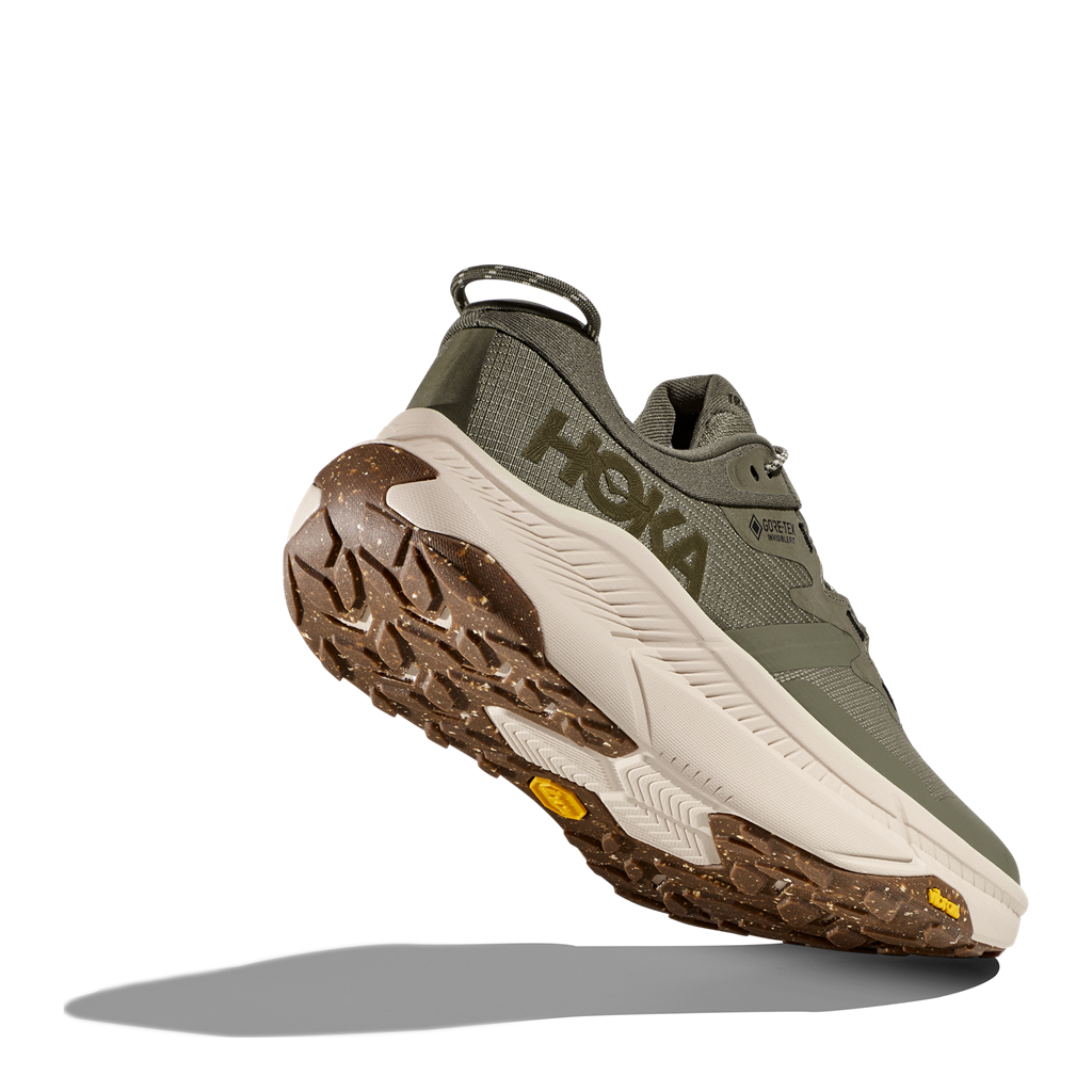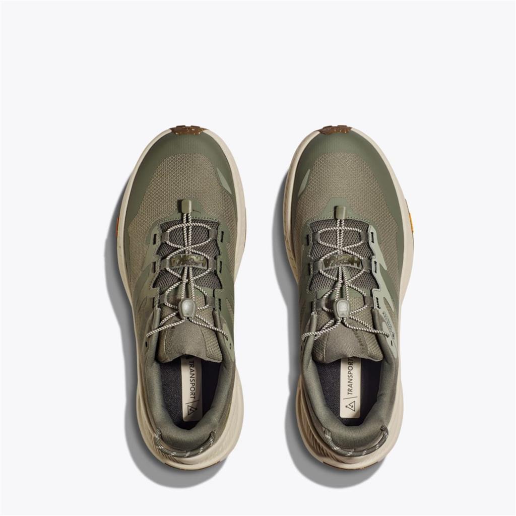 Pripravljen na akcijo, a obenem zelo domač tudi v mestu. Transport GTX je copat, ki smo ga ustvarili z mislijo na točno določeno presečišče: urbana mešanica vsakdanjega aktivnega življenjskega sloga in zmogljivega športnega copata. Je zelo vsestranski in uporaben, primeren za ljudi, ki za pot v službo uporabljajo kolo, za pohajkovanje po mestu ter tudi kakšen neplaniran izlet na okoliške hribčke. Transport je trajnostno zasnovan copat, saj najdemo reciklirane ali okolju prijazne materiale v čisto vseh komponentah. Vodoodporna membrana GORE-TEX Invisible Fit, ki vsebuje 70 % recikliranega poliestra, bo poskrbela, da bodo vaša stopala suha. Vmesni podplat, ki seveda še vedno nudi prepoznavno Hokino udobje, uporablja posebno gumasto peno EVA, ki vsebuje 30 % sladkornega trsa, medtem ko je na zunanji podplat opremljen s posebno gumo Vibram® EcoStep Natural, ki vsebuje kar 90 % nenaftnih komponent. Zgornji del copata se ponaša s trpežnim tekstilom Cordura® RE/CORETM, narejenim iz recikliranih materialov, plus sistem za hitro zavezovanje, 360-stopinjska odsevnost in še in še. Saj veste, pustolovščina je morda že za naslednjim ovinkom!