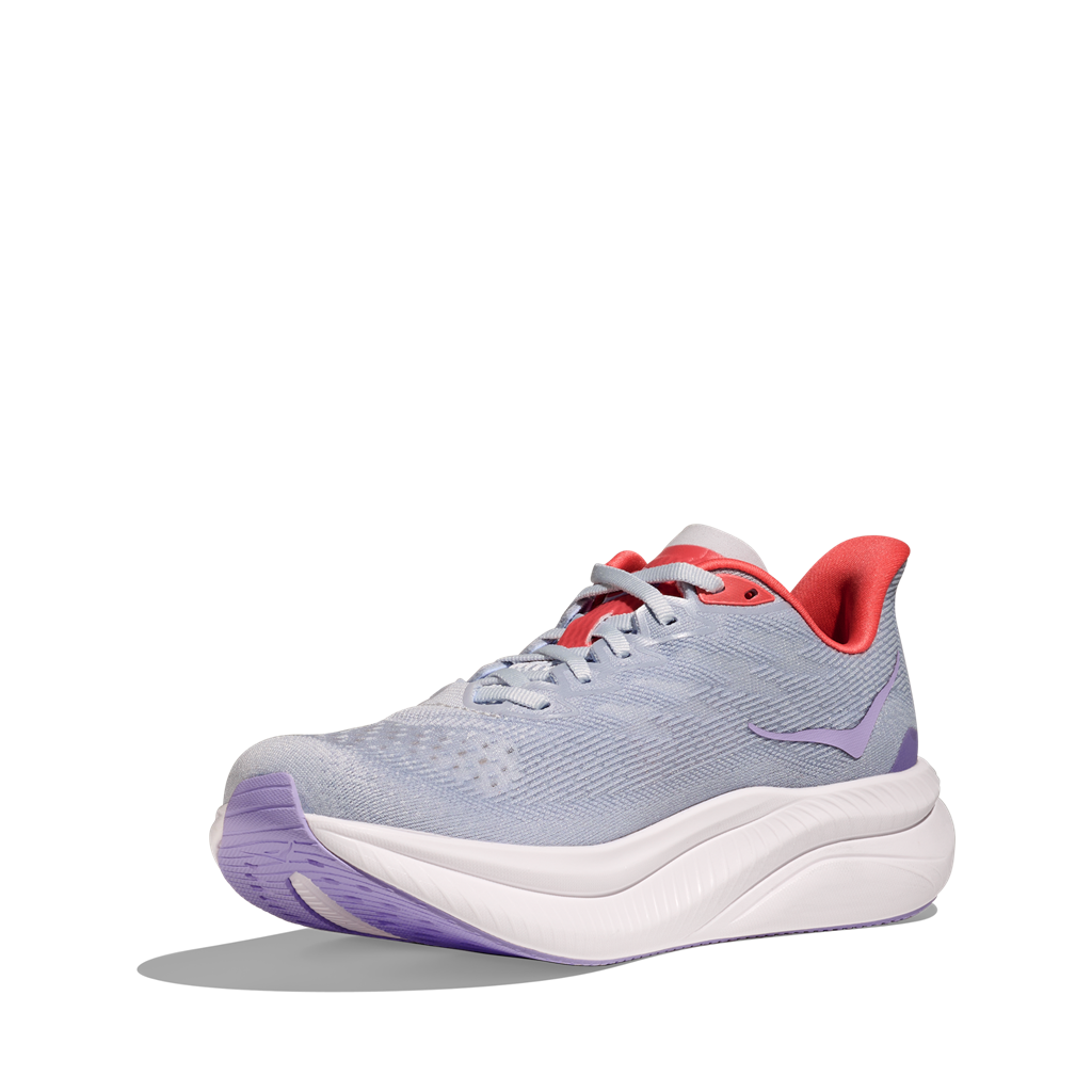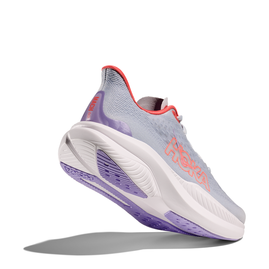 Glej no glej, pa je tu, naš najlažji in najbolj odziven Mach do sedaj! Priljubljenega in živahnega Macha smo še za večji povratek energije posodobili z zelo odzivno super kritično peno in mu na zunanjem podplatu za boljšo trpežnost in oprijem dodali gumo na strateških mestih. V zasnovi prenove copata smo se osredotočili na hitrost in seveda detajle, zato smo na zgornjem delu copata uporabili premium material kril žakard s consko zračnostjo. Novost je tudi dvojno vpetje jezika, ki še poveča občutek udobja stopala. Tvoj novi rekord je pred vrati!