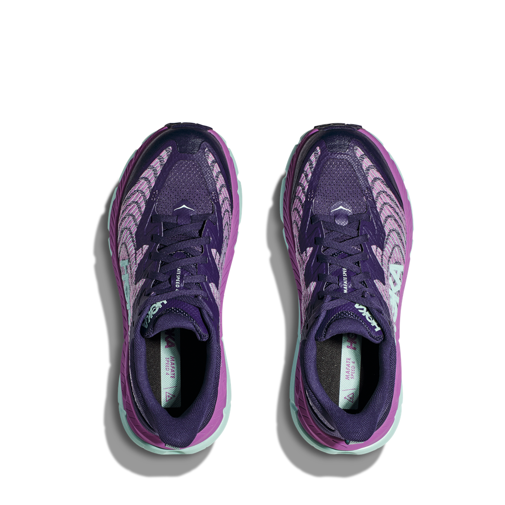 Mafate Speed 4 je vrhunski čevelj za tek po tehničnih terenih, ki povzema najboljše lastnosti svojih predhodnikov in modela EVO Mafate. Linije ostajajo podobne, posodobili smo ga z novo zračno enoslojno žakardno mrežico in vmesnim podplatom ProFlyX™, sestavljenim iz dveh plasti. Spodnja plast je lahka, odzivna baza iz pene, neposredno pod stopalom pa je pozicionirana izjemno mehka pena za vrhunsko blaženje. Za odličen oprijem smo spodnji del podplata opremili z lahko in tanko plastjo vrhunske gume Vibram® Megagrip s konstrukcijo Litebase.